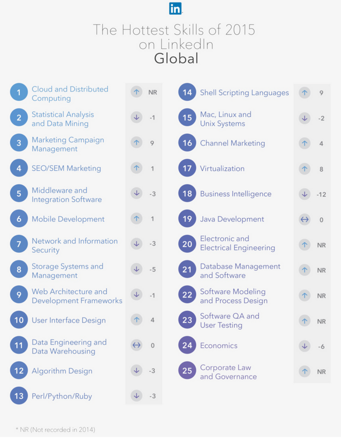 For further detail, here is a list of the top 25 skills of 2015 specific to the UK.